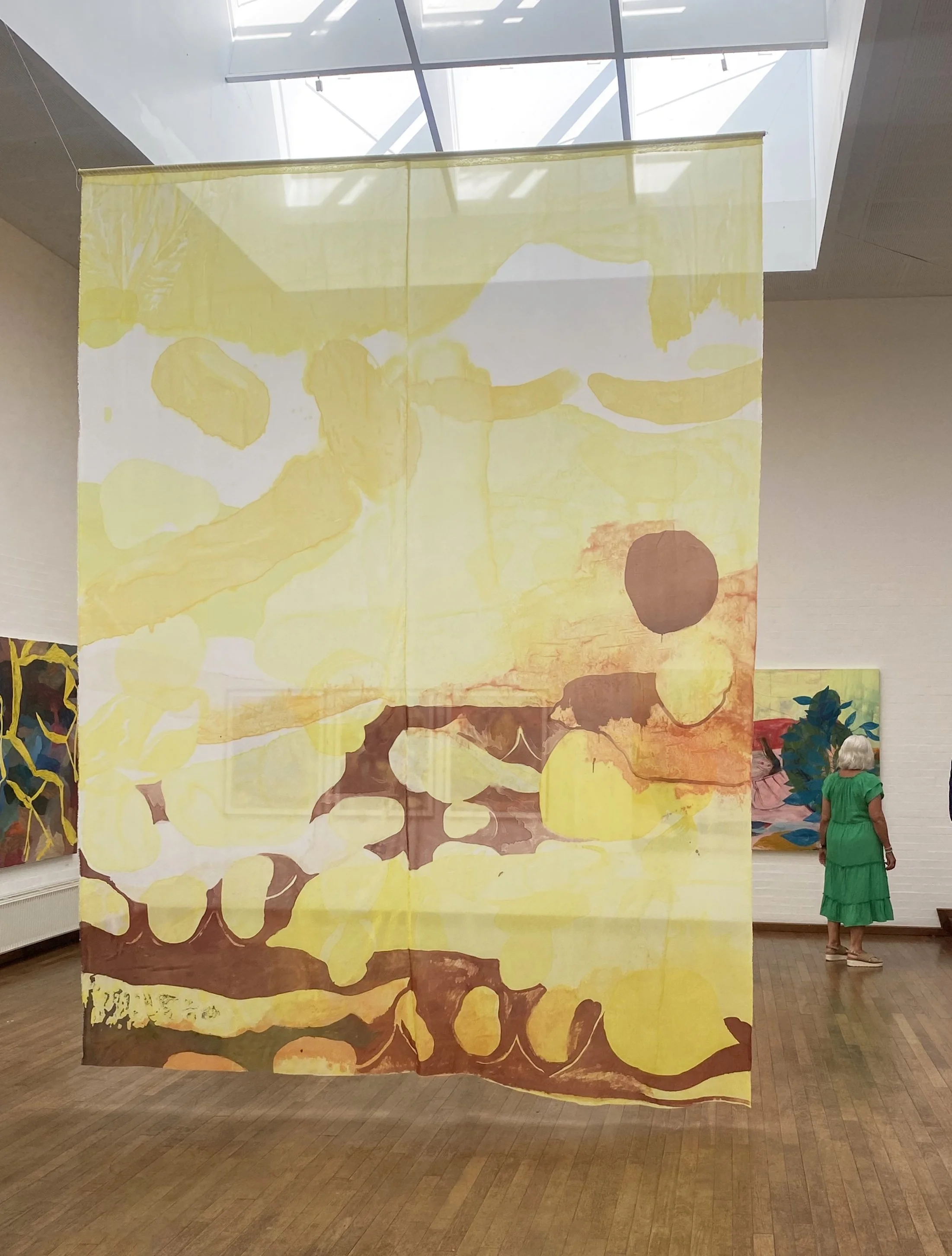 Uden titel (dagsbuen), 2025, 400x300 cm, acrylic on silk.